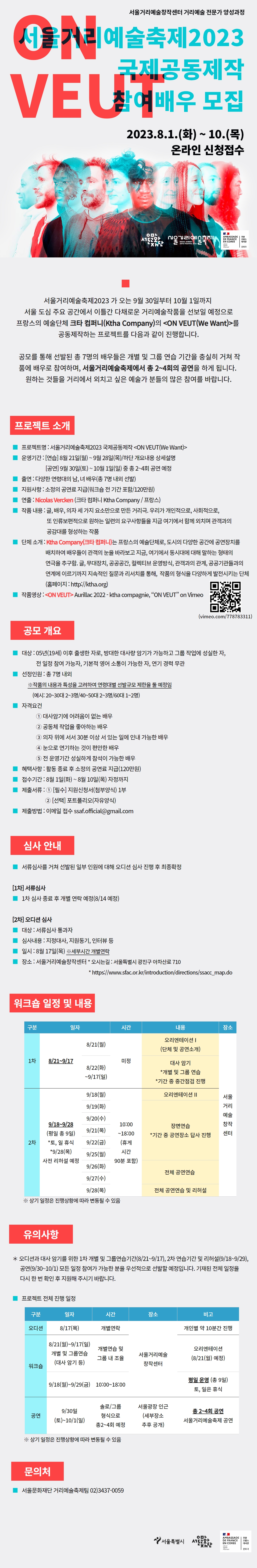 | 서울거리예술축제2023 국제공동제작 크타 컴퍼니 ON VEUT 참여 배우 모집 | |||