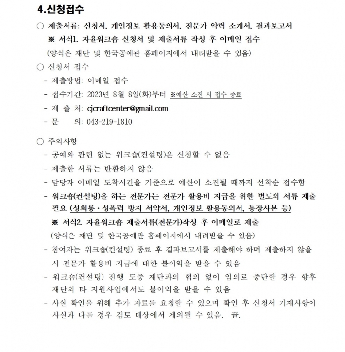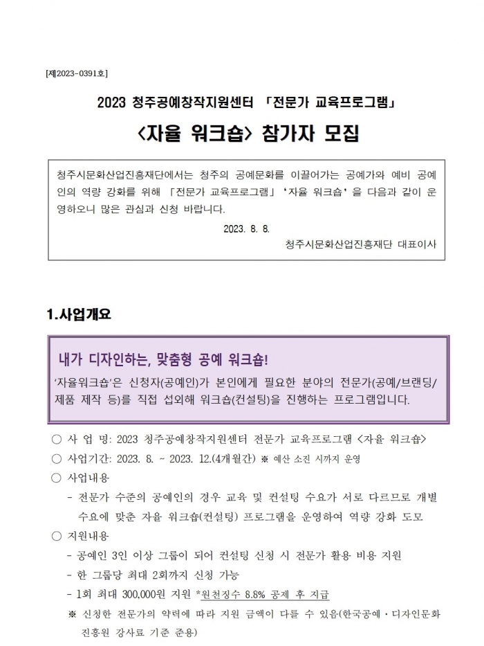 | 2023 청주공예창작지원센터「전문가 교육 프로그램」 <자율워크숍> 참여자 모집 | |||