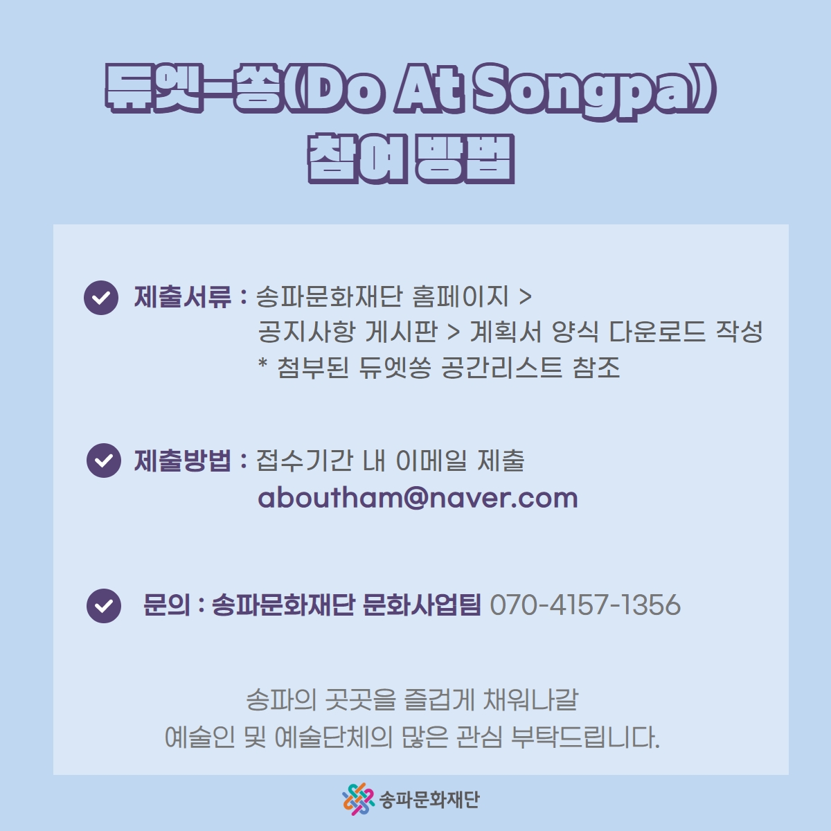 | songpaculture@naver.com | 전화번호 | 070-4157-1356 | |