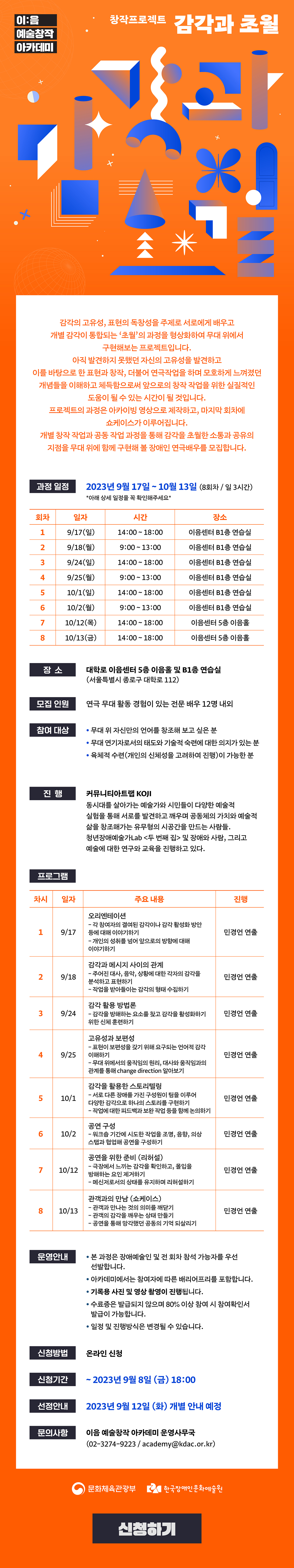 | [아카데미] 창작자 과정 <감각과 초월> 참여자 모집 (~9.8) | |||