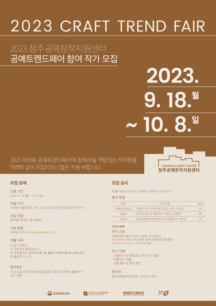 | 2023 청주공예창작지원센터 공예트렌드페어 참여 작가 모집 | |||