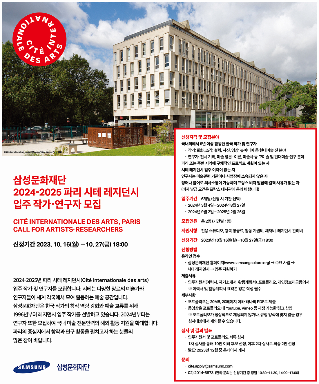 | 2024-2025 파리 시테 레지던시 입주 작가 연구자 모집 | |||