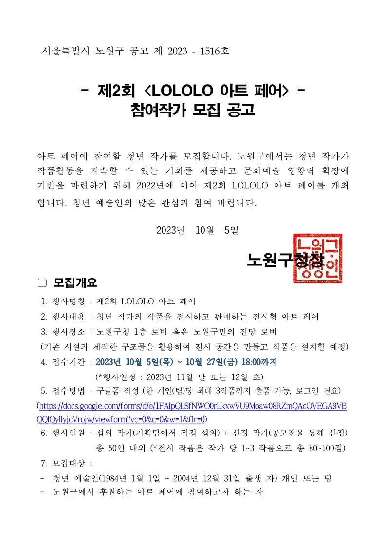 | 제2회 LOLOLO 청년 아트페어 참여작가 모집 공고 | |||