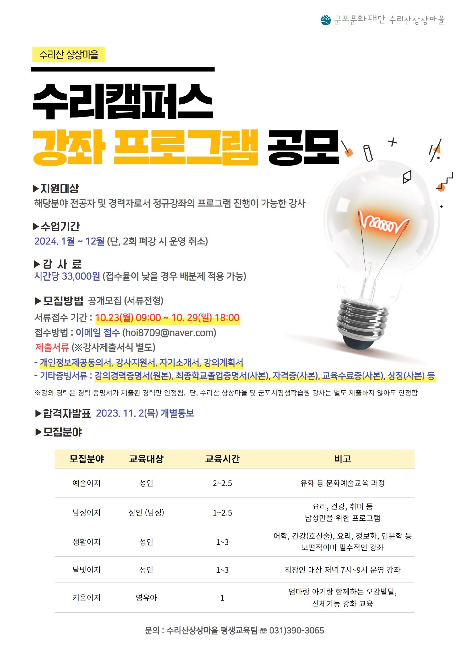 | 수리산상상마을 수리캠퍼스 강좌프로그램 공모 | |||