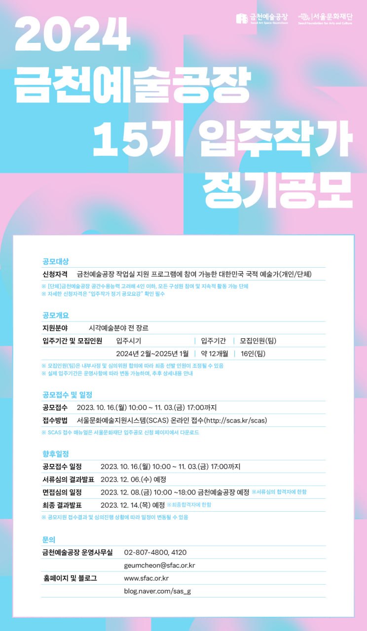 | 2024년 금천예술공장 15기 입주작가 정기공모 | |||