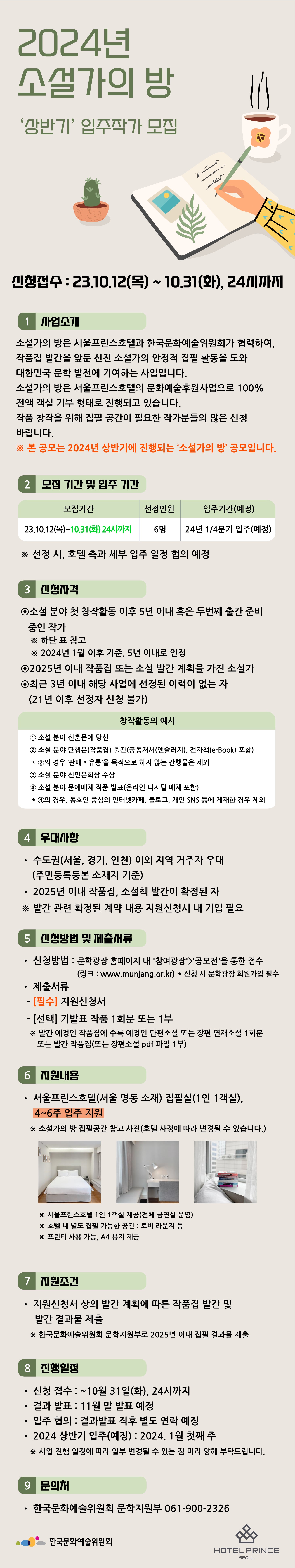 | 2024년도 상반기 호텔프린스 소설가의방 입주작가 신청 안내 | |||
