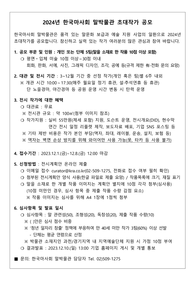 | 2024년 말박물관 초대전 작가 공모(12.8일까지) | |||