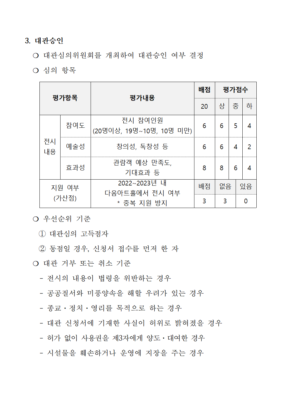 | 분야·대상 | 전시를 개최하고자 하는 도내 개인·단체(기관) 작가 | 인원 | - |
