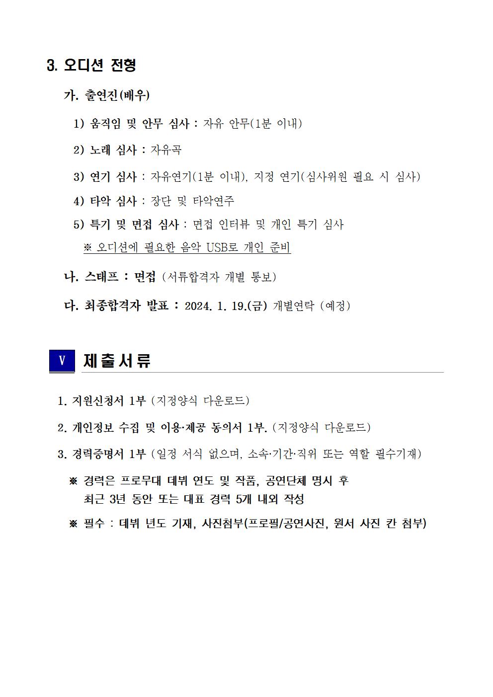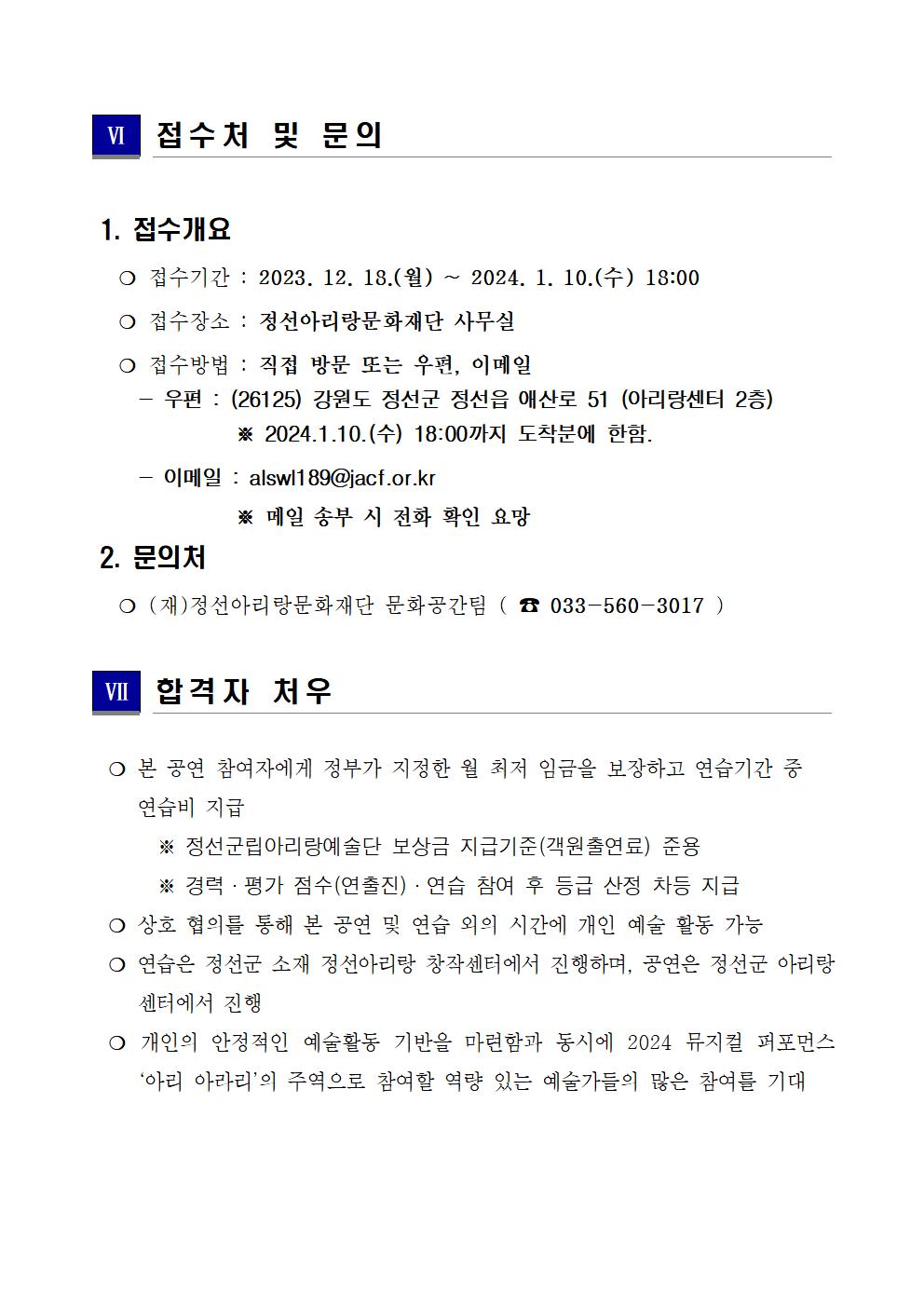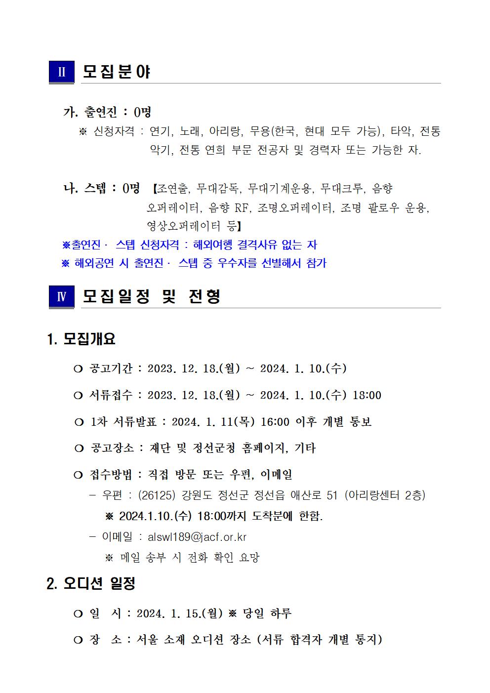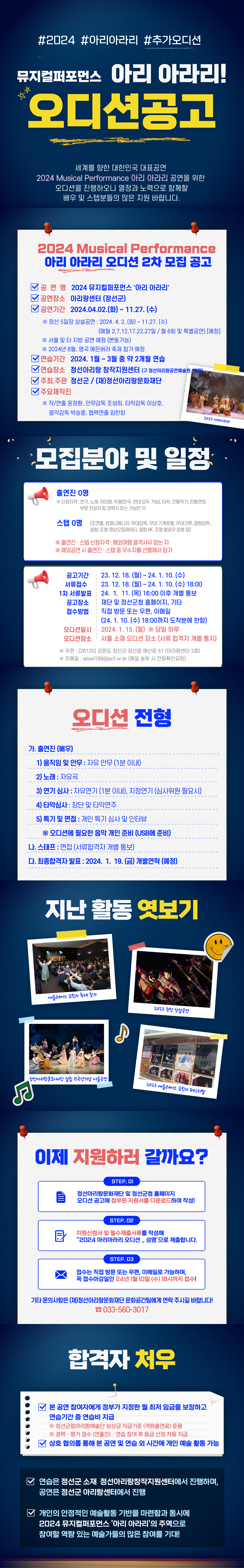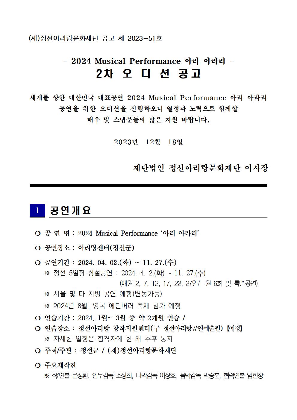 | 2024년 아리아라리 뮤지컬 퍼포먼스 2차 공개 오디션 모집 공고 | |||