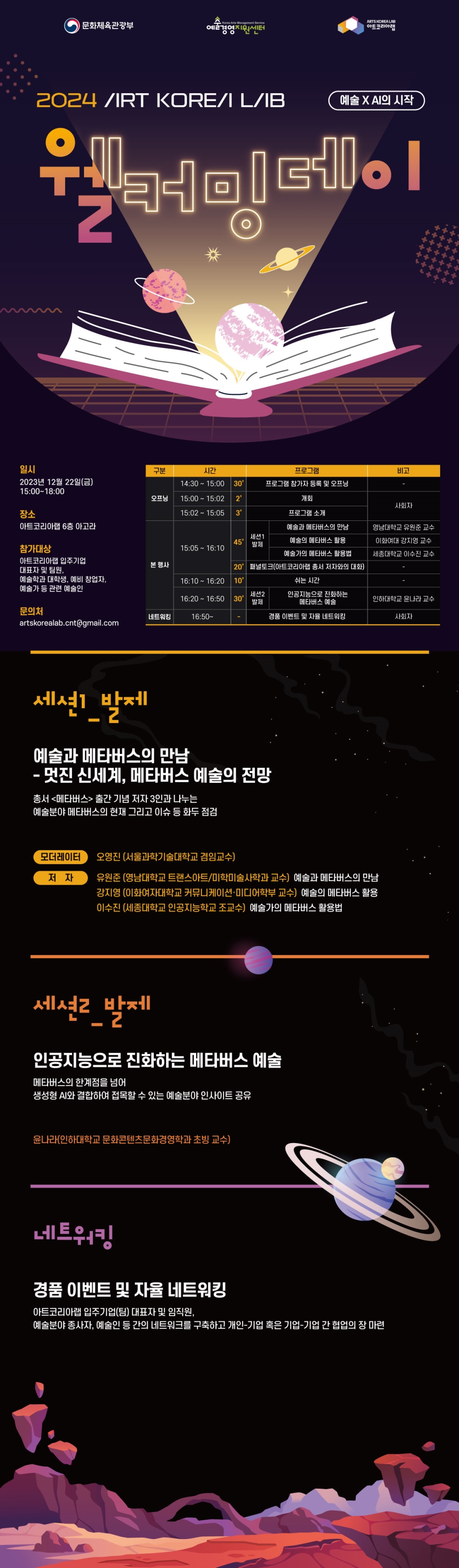 | 주관처 | 아트코리아랩,예술경영지원센터,문화체육관광부 | ||