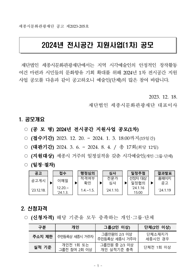 | 분야·대상 | 세종시에 거주하는 시각예술인 | 인원 | - |