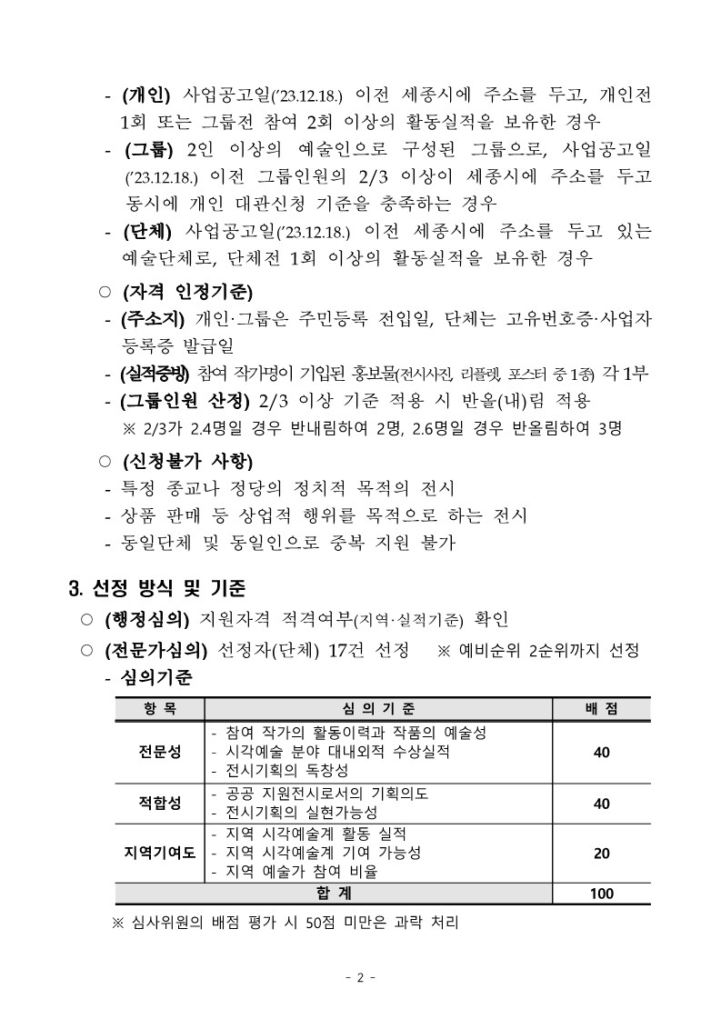 | 2024년 전시공간 지원사업(1차) 공모 공고 | |||