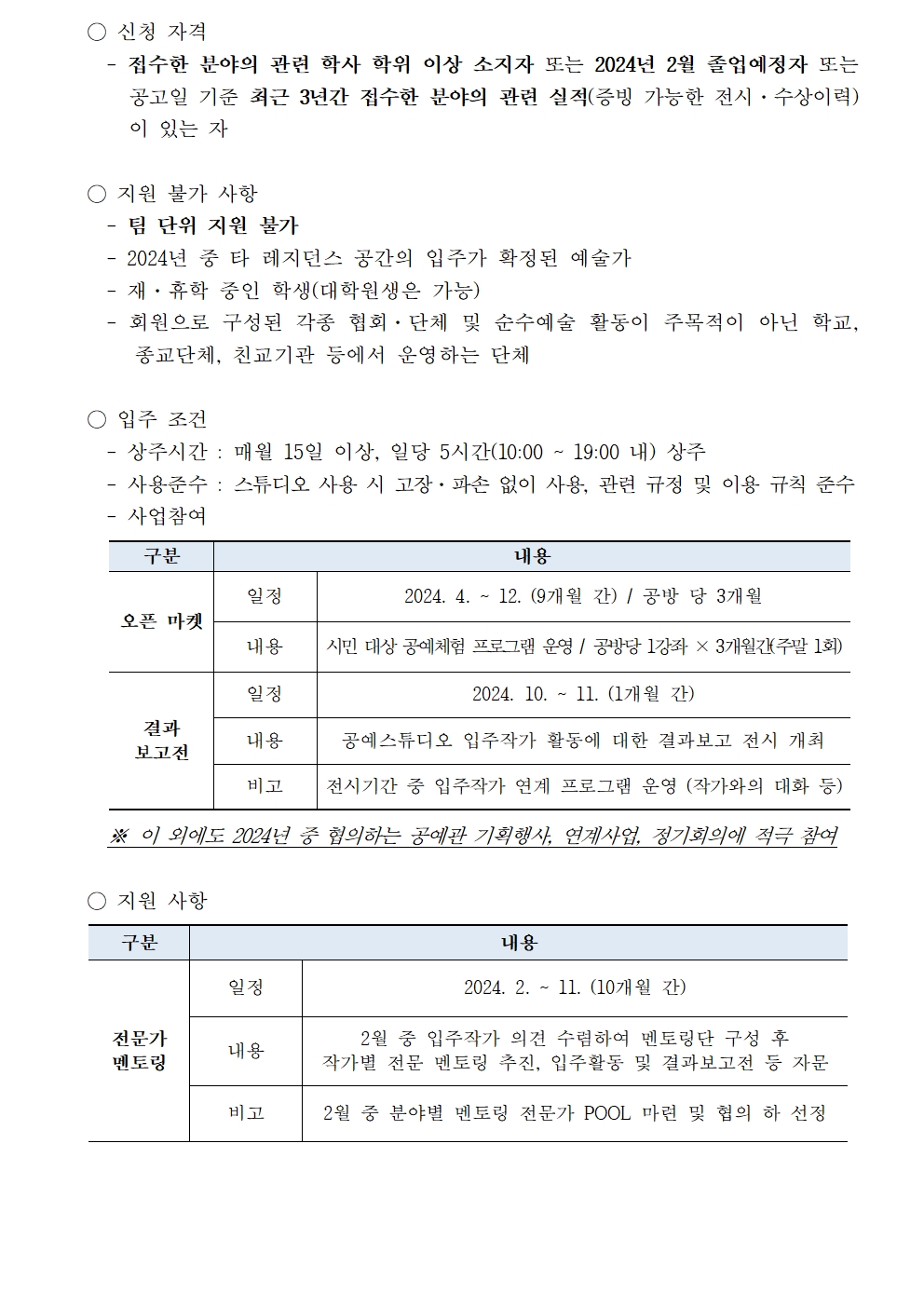 | 2024 청주시한국공예관 공예스튜디오 입주작가 금속분야 재모집 공고 | |||