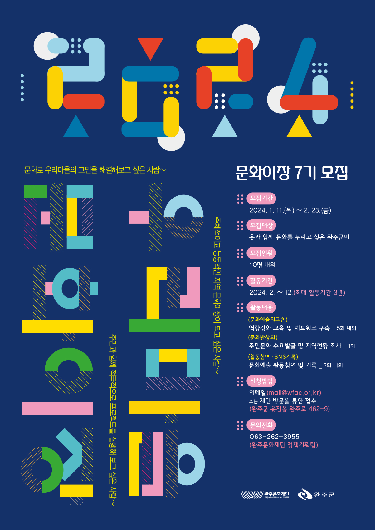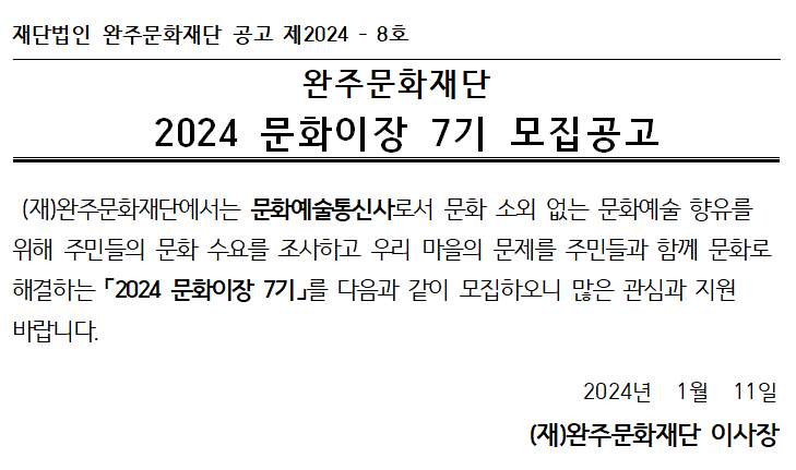 | 분야·대상 | 이웃과 함께 문화를 누리고 싶은 완주군민 | 인원 | 10명 내외 |