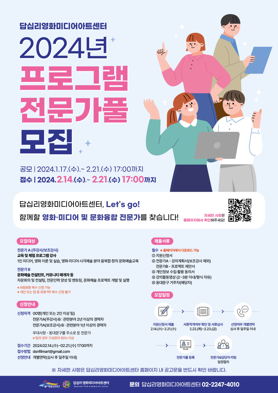 | [모집] 답십리영화미디어아트센터 2024년도 프로그램 전문가풀 모집 공고 | |||
