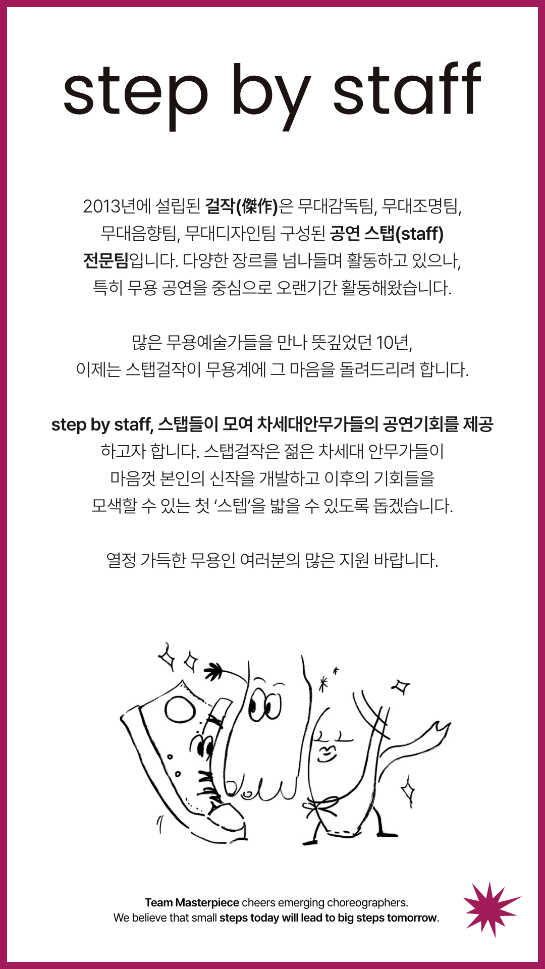 | 차세대무용인들을 위한, step by Staff 공모 (2024.01.21 - 2024.02.07) | |||