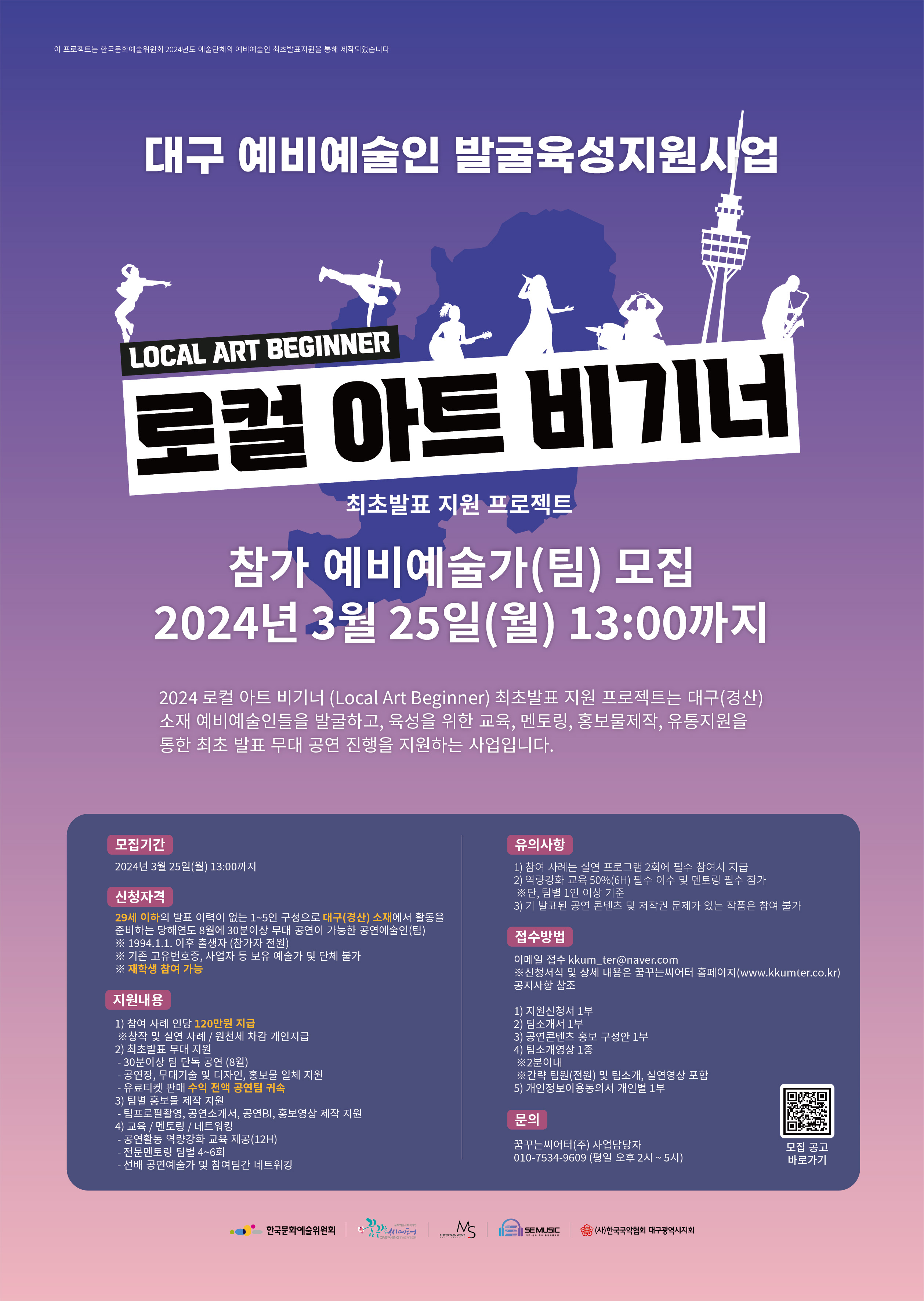 | 2024 로컬 아트 비기너 최초발표 지원 프로젝트 참가자 모집(~3/25) | |||