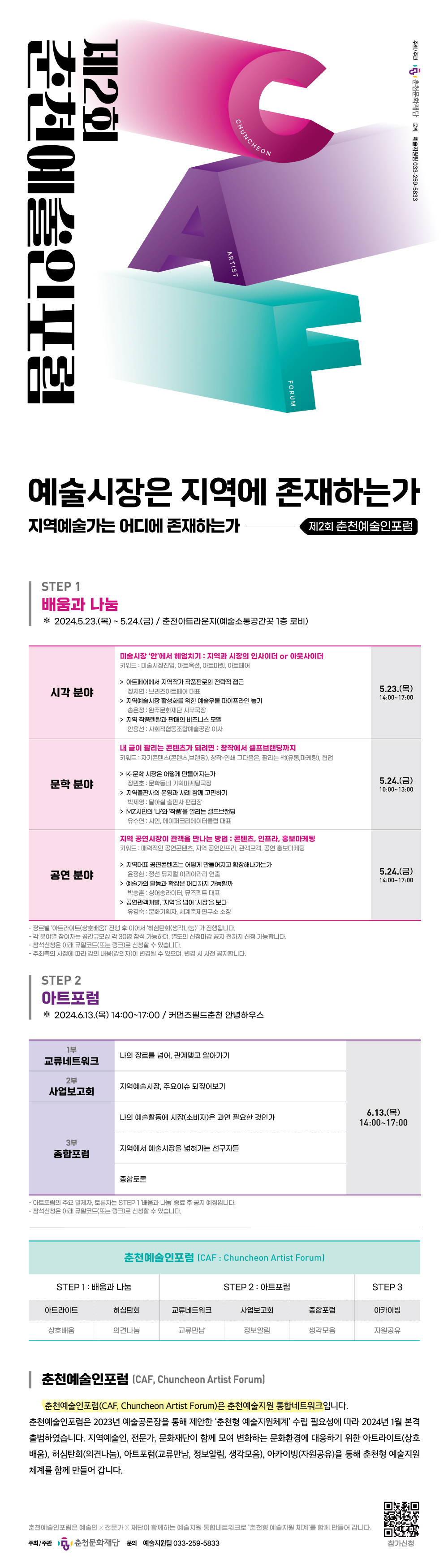 ![]() ![]() 문의> 춘천문화재단 예술지원팀 033-259-5833 신청> 춘천문화재단 홈페이지 공지사항 또는 https://form.naver.com/response/2YmEsw2LShVfXJSoxp5l5g
