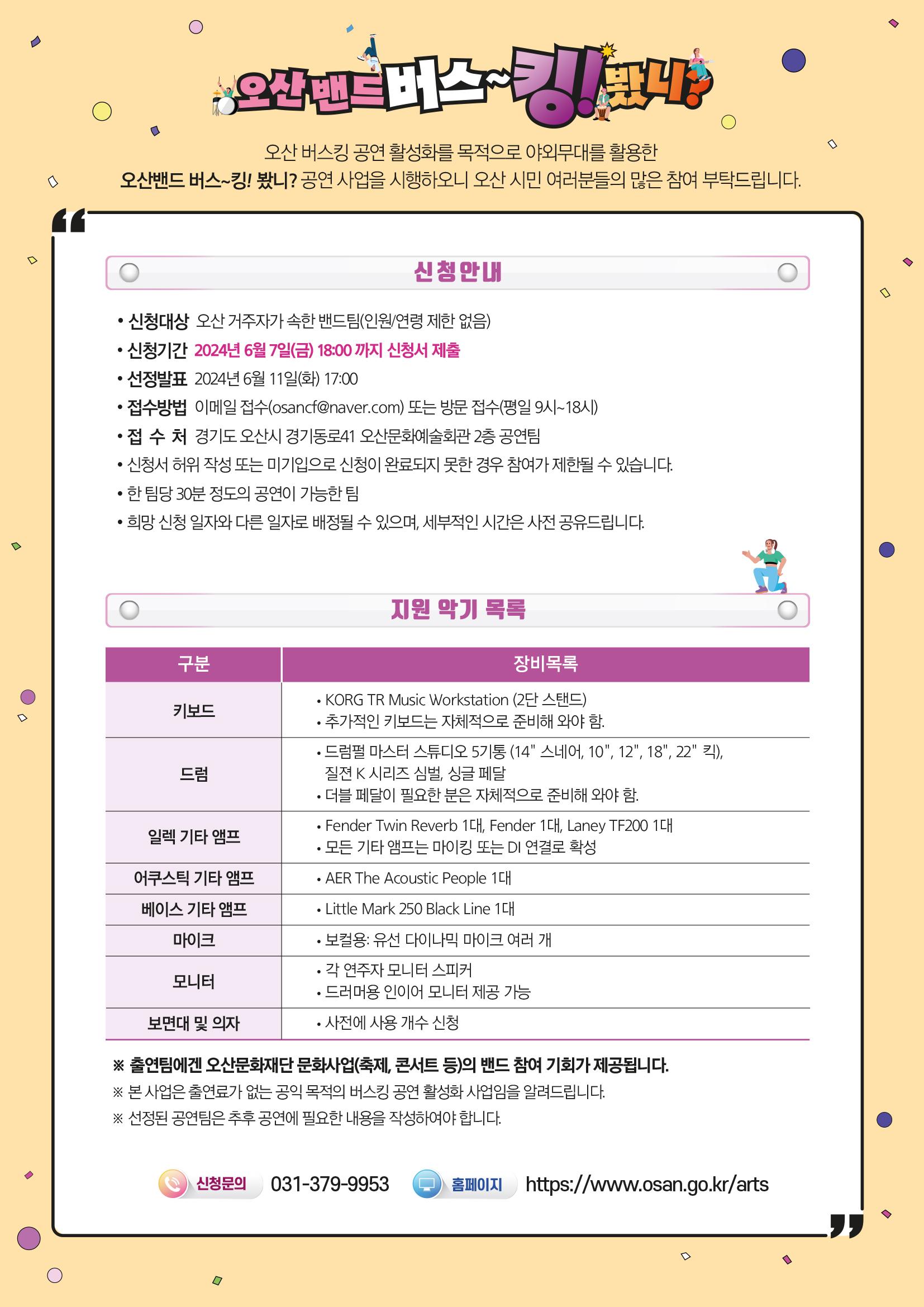 | 분야·대상 | 오산시 거주자 및 오산시 소재의 운영 밴드 | 인원 | - |
