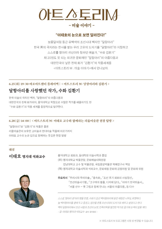 [강연] 6.25(화) 19:30 마포아트센터 플레이맥 <아트스토리 M : 달항아리와 김환기>