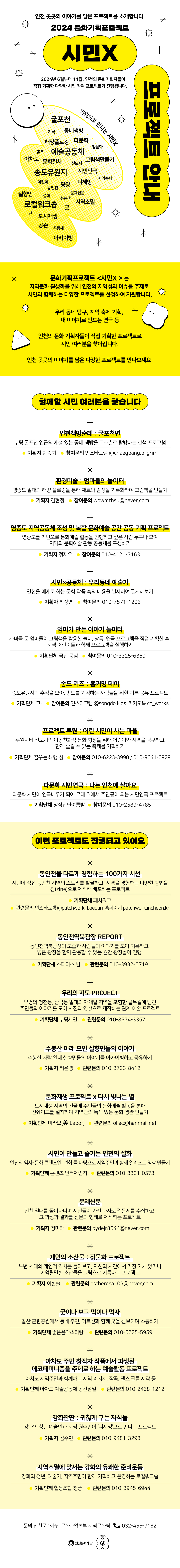 3. 문 의 처 : 인천문화재단 문화사업본부 지역문화팀 ☎032-455-7182