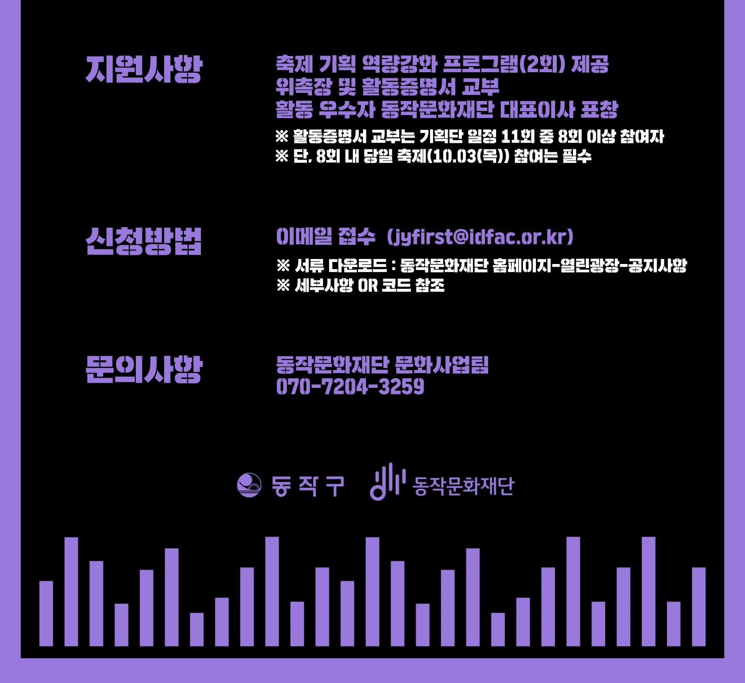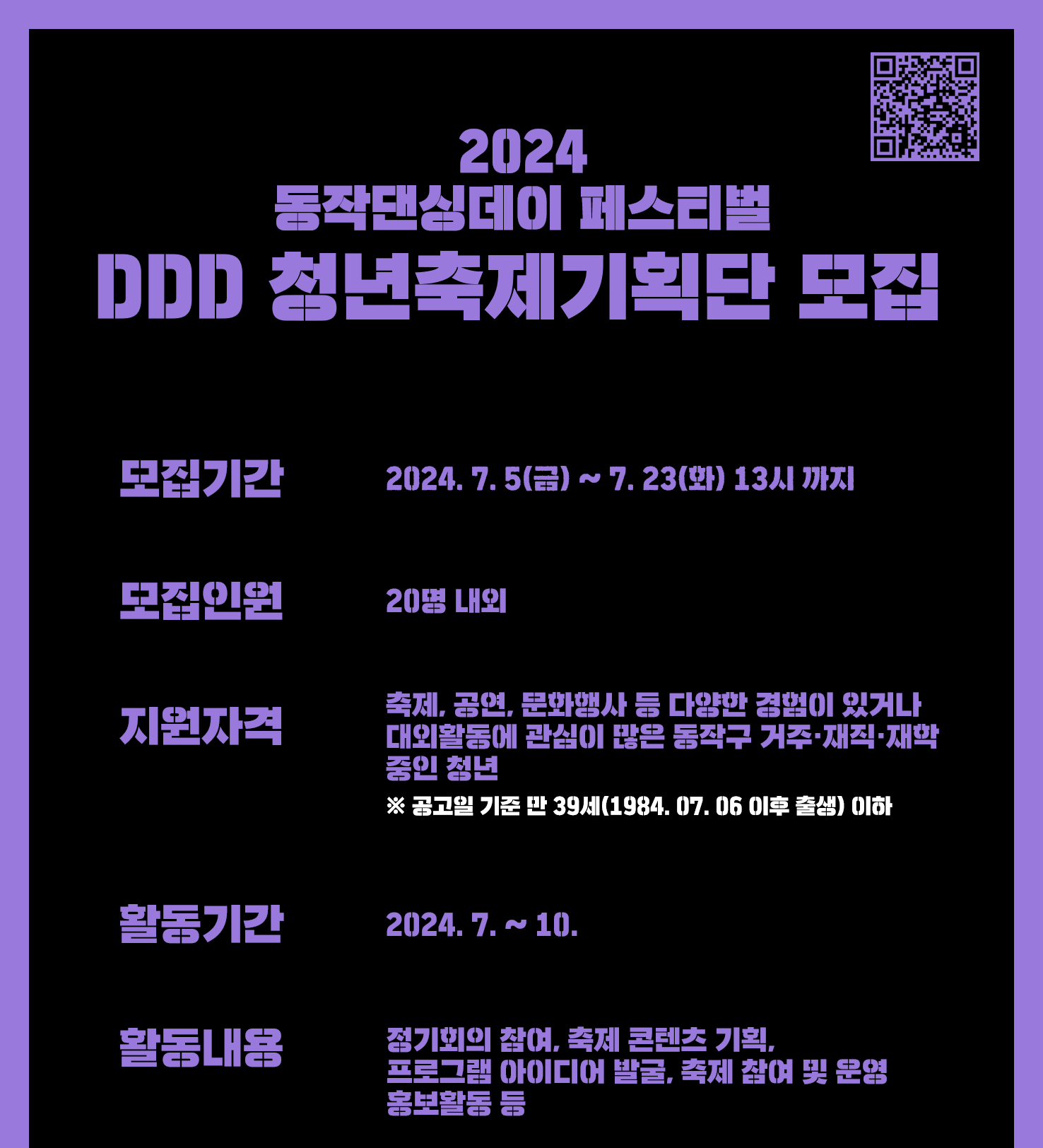 | <2024 동작댄싱데이 페스티벌 > DDD 청년축제기획단 모집 공고 [기간연장] | |||