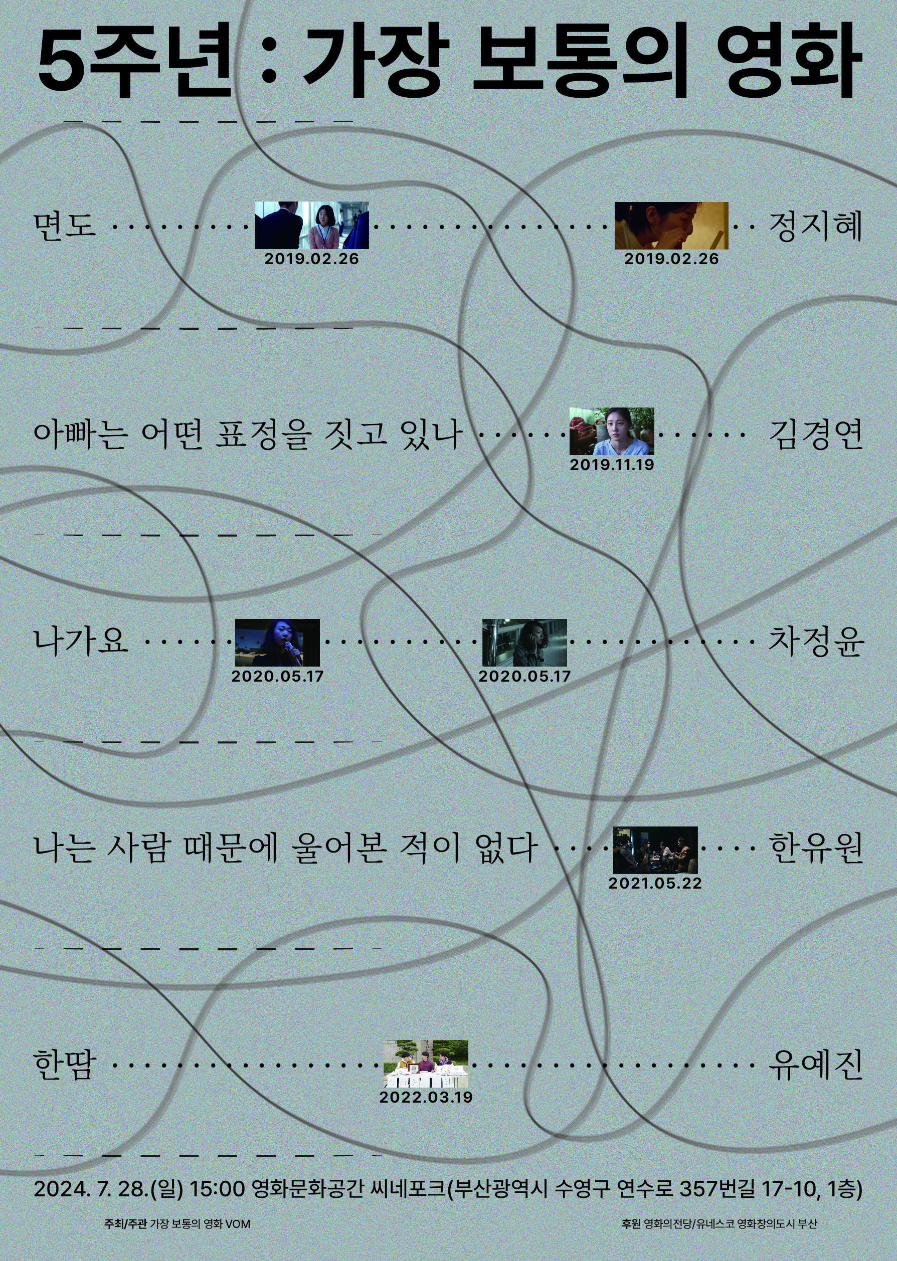 | [가장보통의영화 VOM] 5주년 기념 특별 단편영화 상영회 (24/7/28, 15시 @씨네포크) | |||
