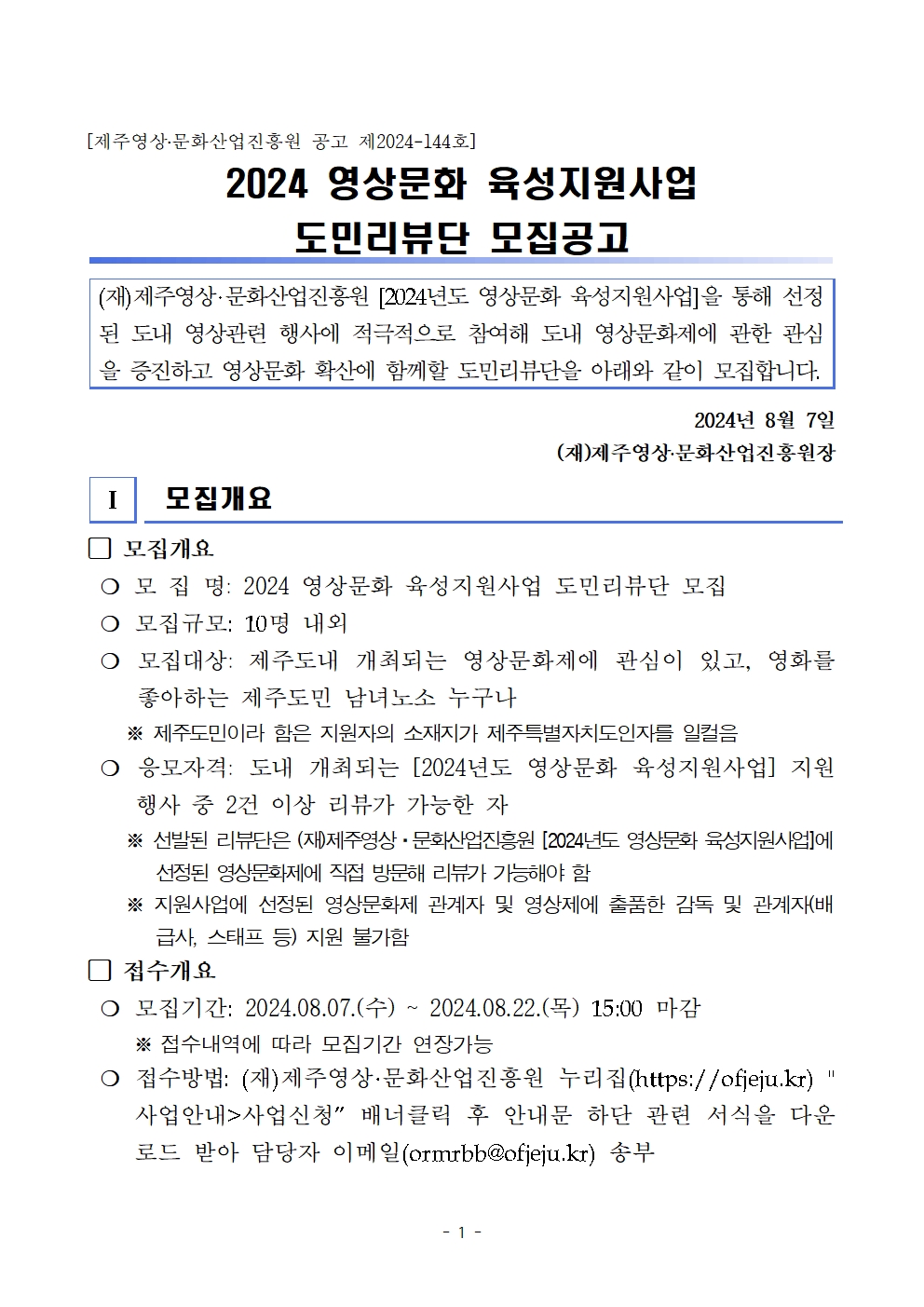 | 2024 영상문화 육성지원사업 도민리뷰단 모집공고 | |||