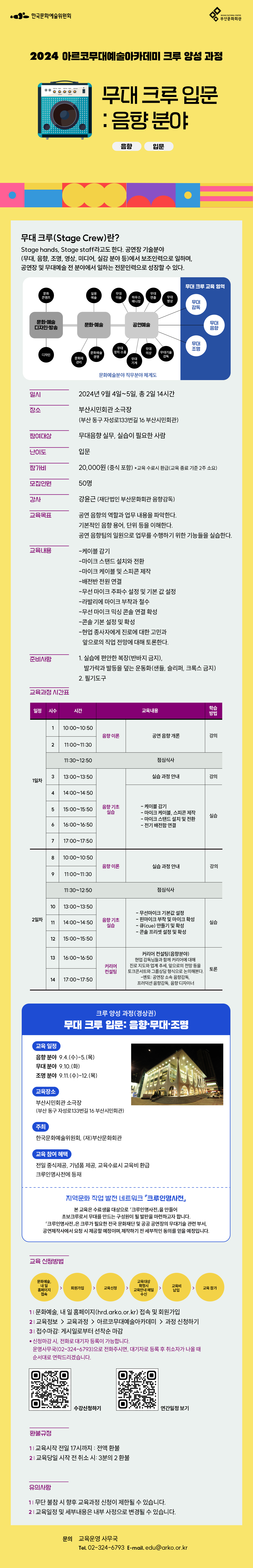 | [아르코무대예술아카데미]무대 크루 입문: 음향 분야 경상권 | |||