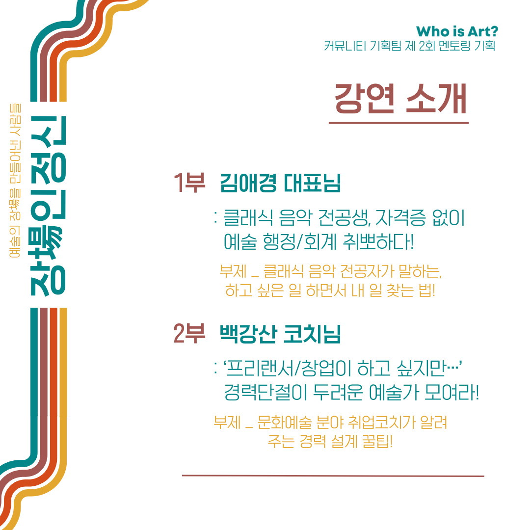 | 클래식 전공자를 위한 예술계 취창업 세미나, <장인정신 ; 예술의 장(場)을 만들어낸 사람들> | |||
