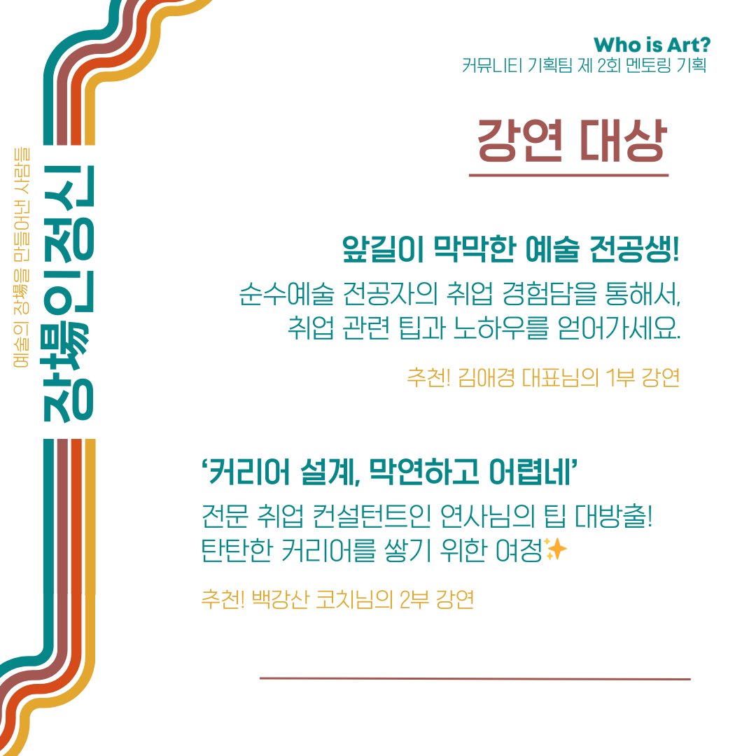 | 다음글 | 클래식 전공자를 위한 예술계 취창업 세미나, <장인정신 ; 예술의 장(場)을 만들어낸 사람들> | ||