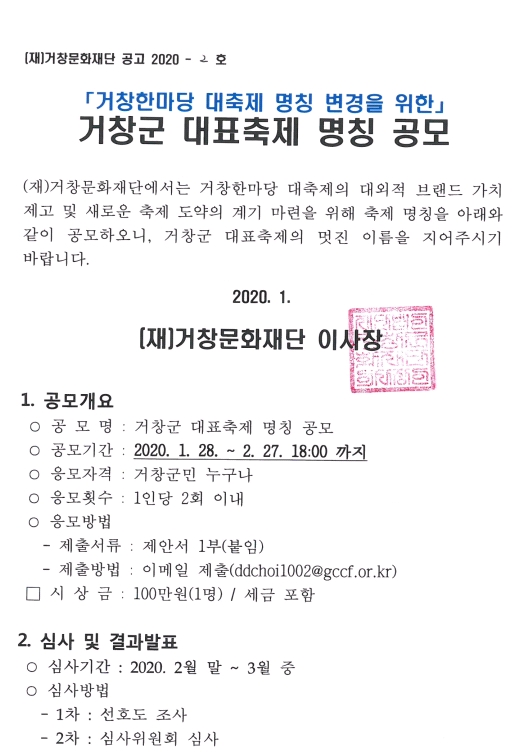| 거창한마당 대축제 명칭 공모 중 | |||||