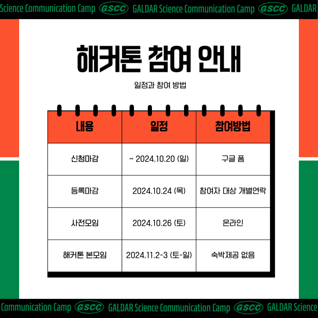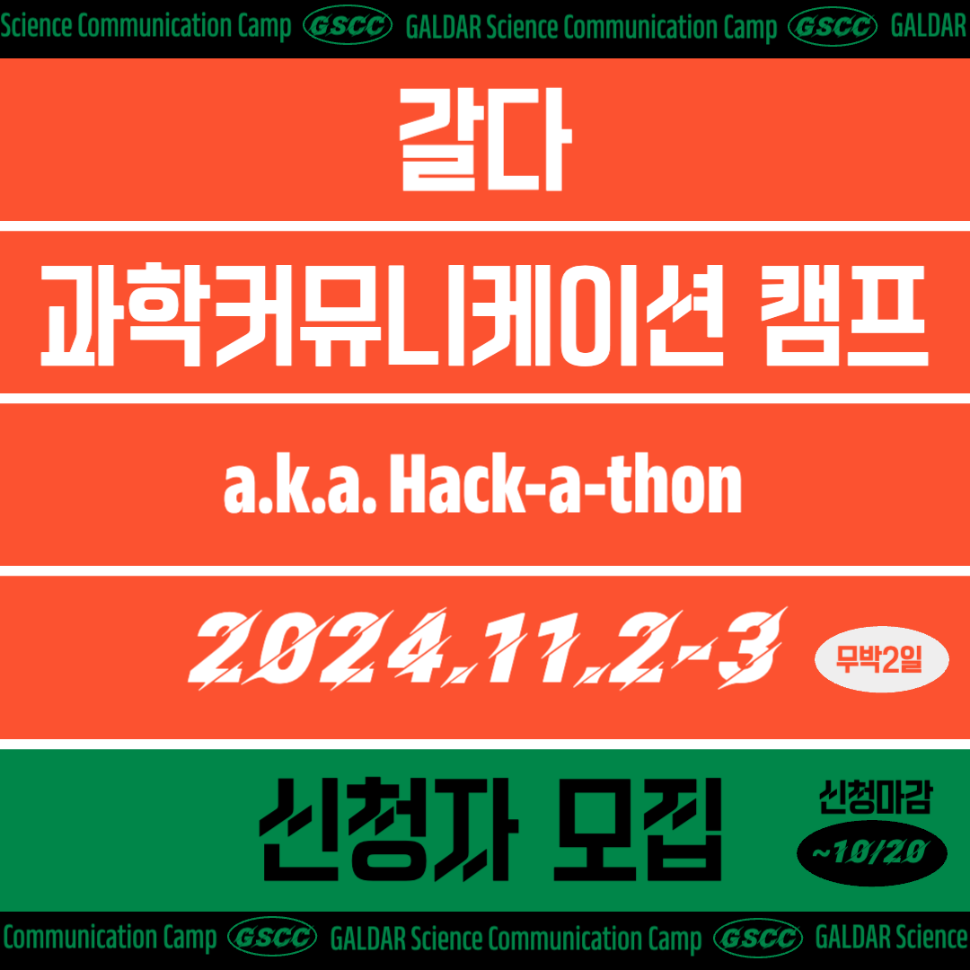 | 갈다 과학 커뮤니케이션 캠프(해커톤) 참여자 모집 (10/20 신청마감) | |||