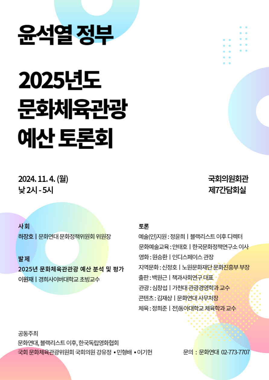 | <윤석열 정부 2025년도 문화체육관광 예산 토론회> | |||