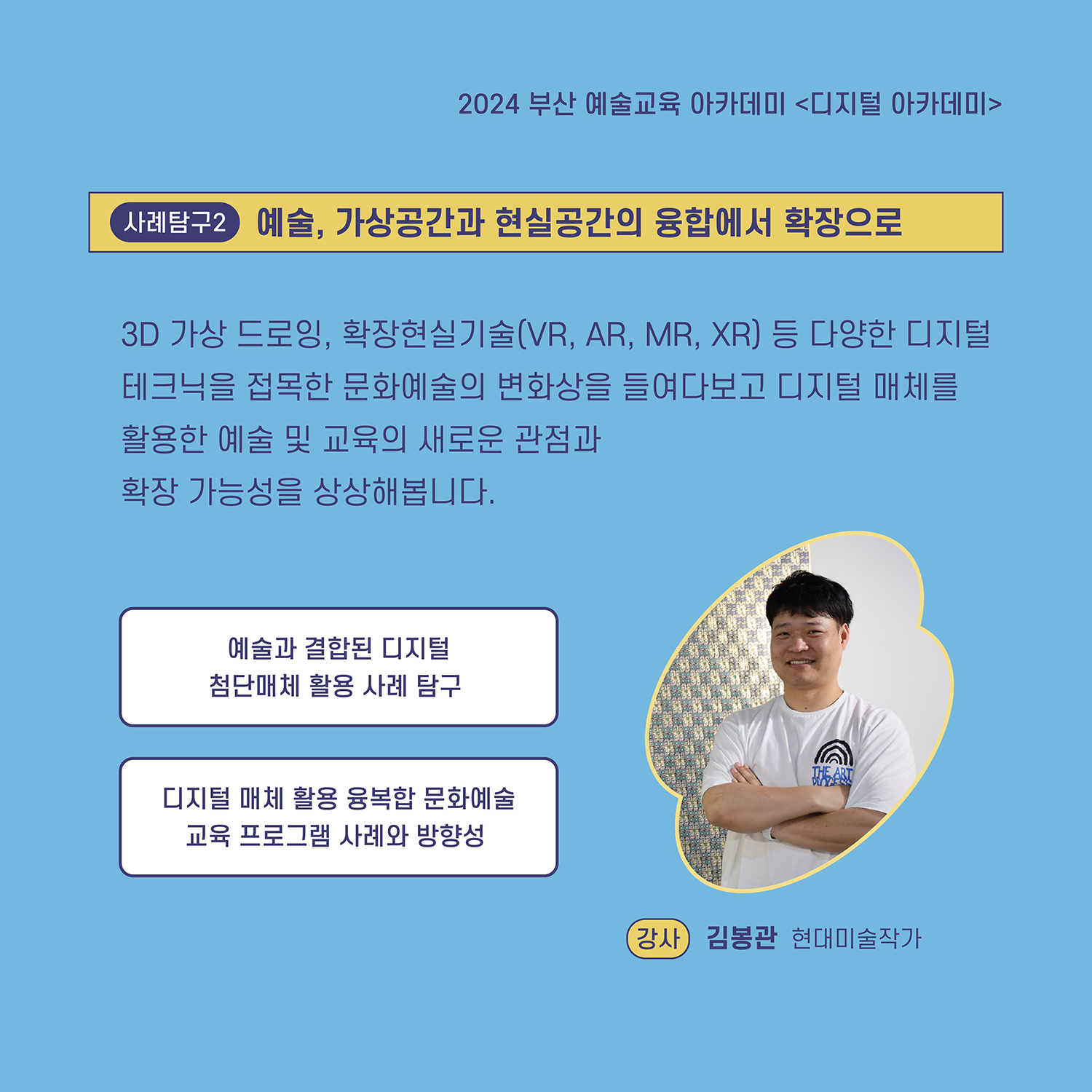 | [2024 부산예술교육 아카데미] ② 디지털아카데미 ‘기술을 통한 예술의 확장 : 사례탐구2’ | |||