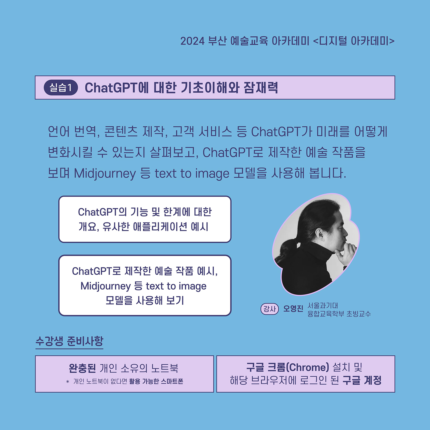 | [2024 부산예술교육 아카데미] ③ 디지털아카데미 ‘챗GPT, 마법과 마술 사이에서 : 실습1’ | |||