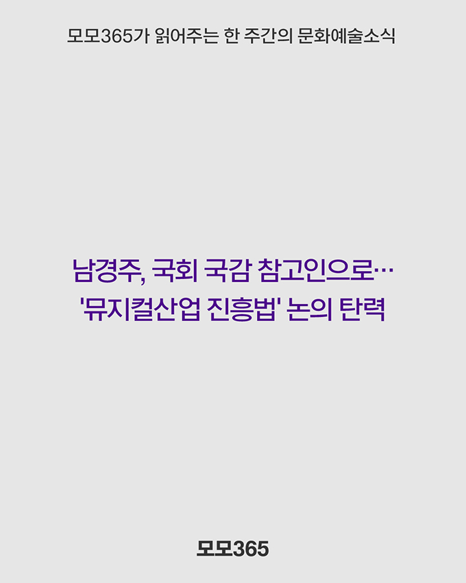 1. 남경주, 국회 국감 참고인으로…'뮤지컬산업 진흥법' 논의 탄력