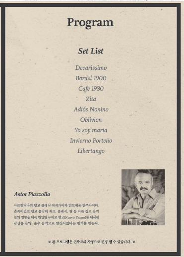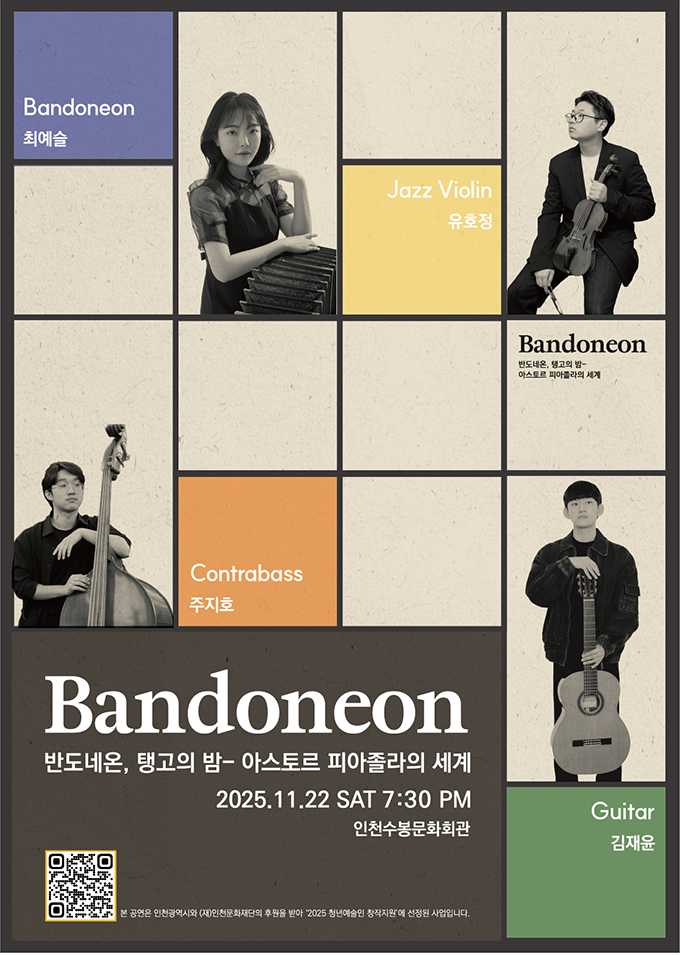 반도네온, 탱고의 밤 - 아스토르 피아졸라의 세계 2025. 11. 22 (토) 7:30 PM 인천수봉문화회관