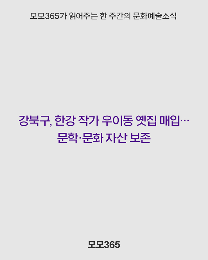 7. 강북구, 한강 작가 우이동 옛집 매입…문학·문화 자산 보존 https://www.newsis.com/view/NISX20251009_0003356930