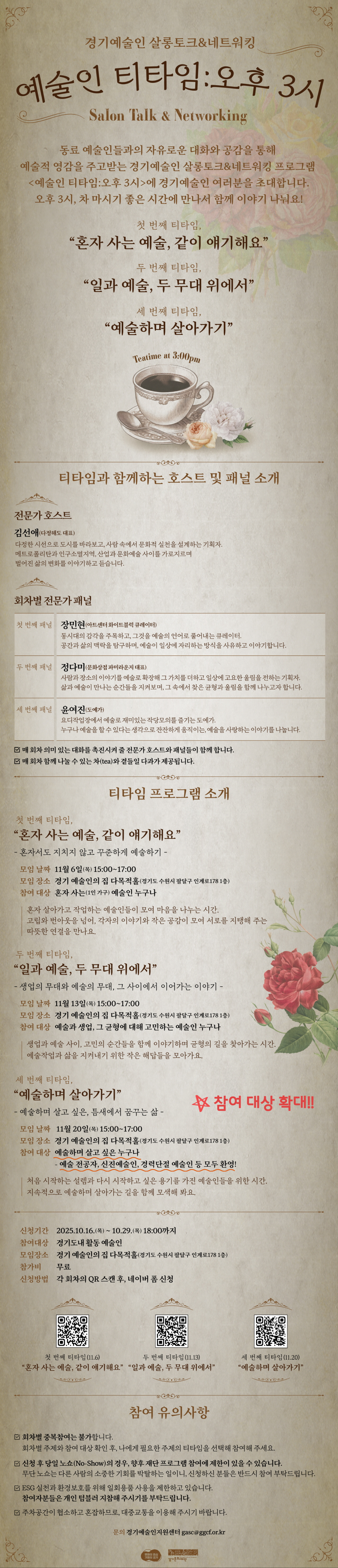 경기예술인 살롱토크&네트워킹 <예술인 티타임:오후 3시> 참여자 모집