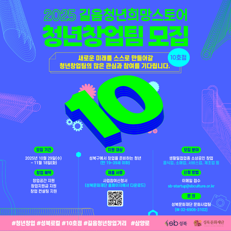 | [성북문화재단]2025 길음청년희망스토어 청년창업팀 모집 | |||