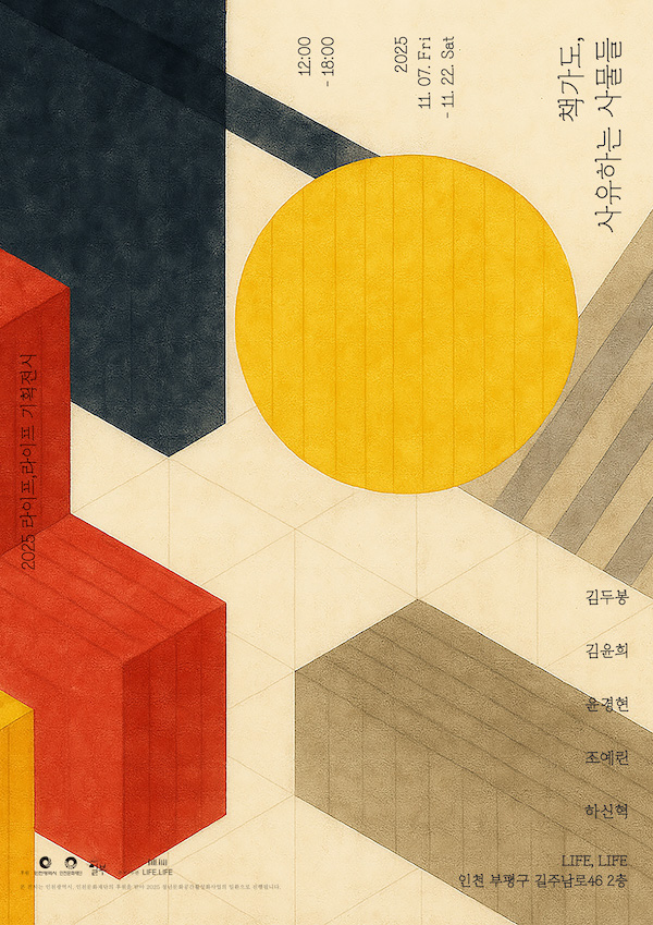 전시 소개 독립서점 LIFE,LIFE는 2025년 한 해 동안 ‘삶을 담는 그릇’을 주제로 공예·기록·사유를 잇는 기획 프로젝트를 진행해왔습니다. 이번 전시 《책가도, 사유하는 사물들》은 그 프로젝트의 마지막 장으로, 조선 후기 책거리·책가도에서 발견되는 지적 취향과 일상의 감각을 오늘의 공예적 언어로 재해석한 기획전입니다. 책가도는 단순한 정물화가 아니라 그 시대의 사고방식·취향·삶의 태도를 압축한 사유적 장치였습니다. LIFE,LIFE는 이 정신을 현대적으로 번역하여, 금속·섬유·도자·유리 공예가 다섯 명과 함께 ‘사유하는 사물들’로 구성된 현대적 책가도를 실험적으로 구현했습니다. 이번 전시는 공예를 기능적 오브제가 아닌 태도·기억·관계의 서사를 담은 매체로 바라보며, 책과 사물, 작가의 사유가 교차하는 지점을 조명합니다. 전시 구성 - 조선 책가도의 구조와 감각을 현대적으로 해석한 전시 공간 디자인