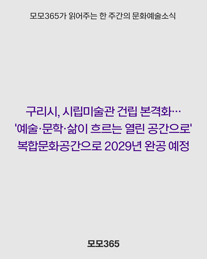 현대미술관과 손잡고 글로벌 협력 본격화’ https://www.geconomy.co.kr/mobile/article.html?no=309792 7. 여의도 제2세종문화회관, 복합문화시설로 2029년 준공 예정. 시민 위한 개방형 설계 적용 https://cm.asiae.co.kr/article/2025110517234007429 8. 구리시, 시립미술관 건립 본격화…'예술·문학·삶이
