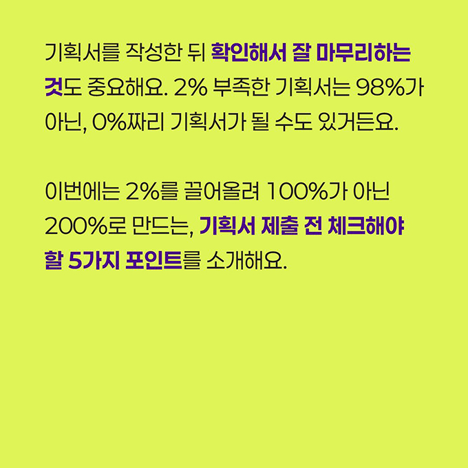 | 기획서 완성! 200%로 끌어올리는 체크 포인트 5가지 | |||