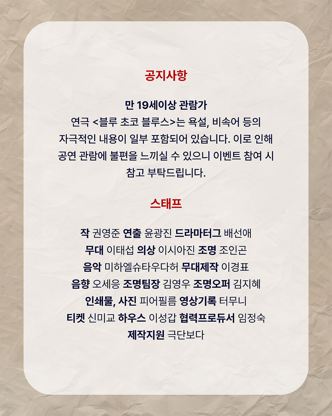 | 모모365와 함께하는 연극 <블루 초코 블루스> 초대권 증정 이벤트 | |||
