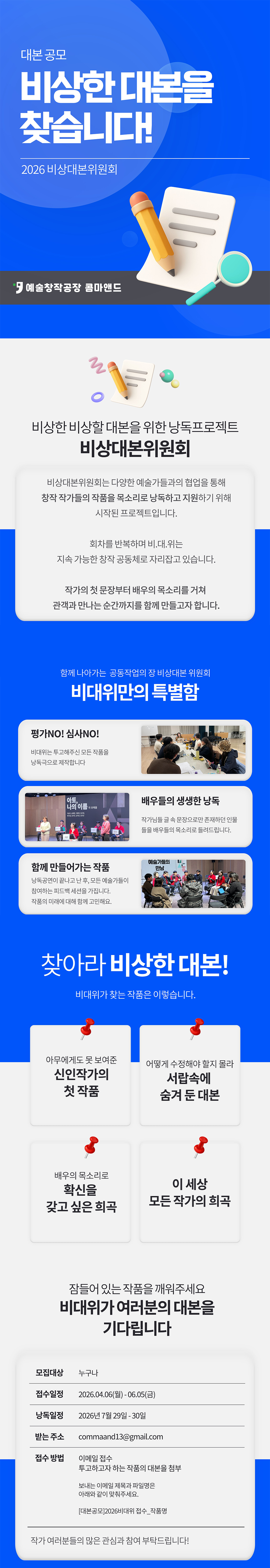 | 2026 비상대본위원회 대본 모집 공고 - 예술창작공장 콤마앤드 | |||