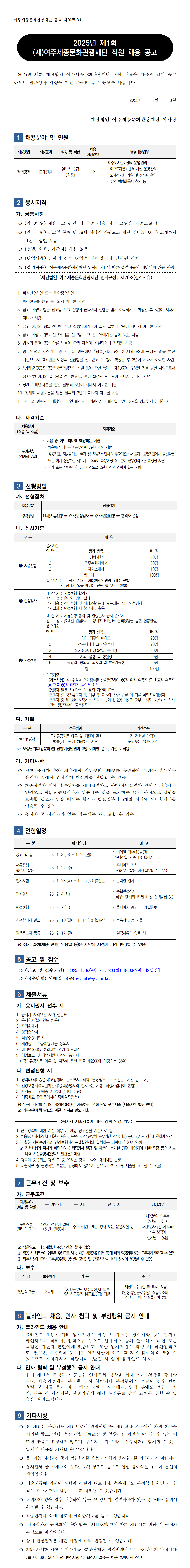 [(재)여주세종문화관광재단] 2025년 제1회 (재)여주세종문화관광재단 직원 채용 공고