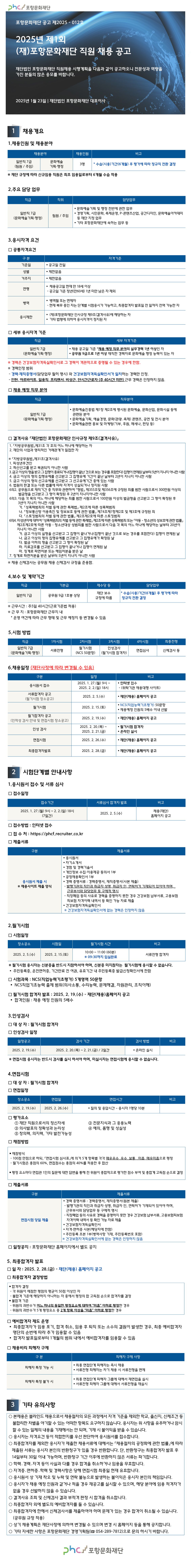 [(재)포항문화재단 ] 2025년 제1회 (재)포항문화재단 직원 채용 공고