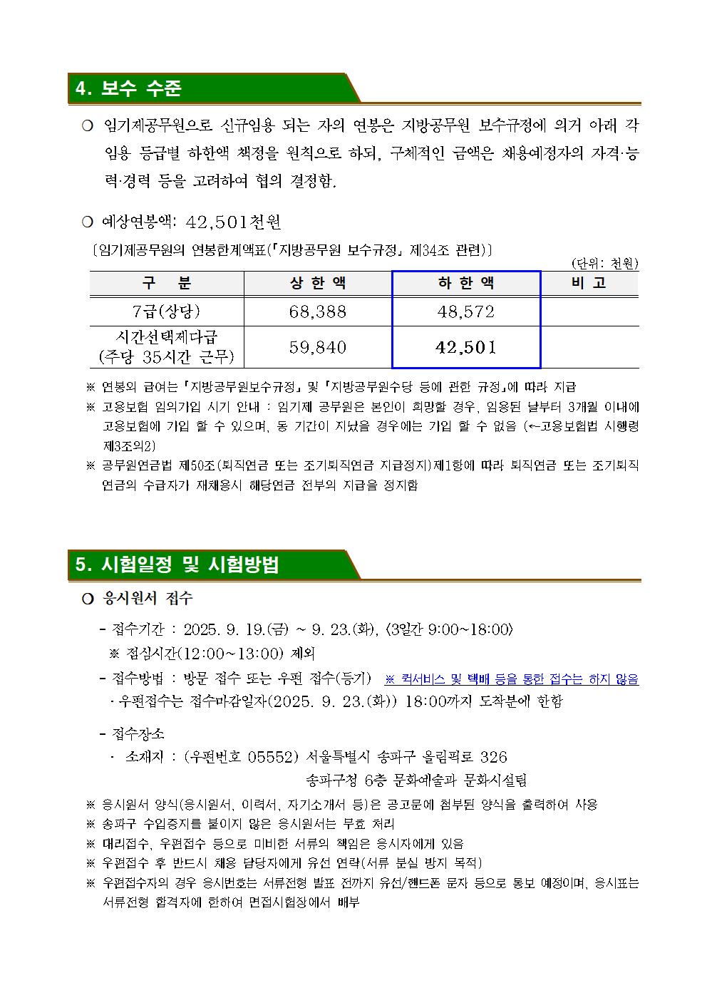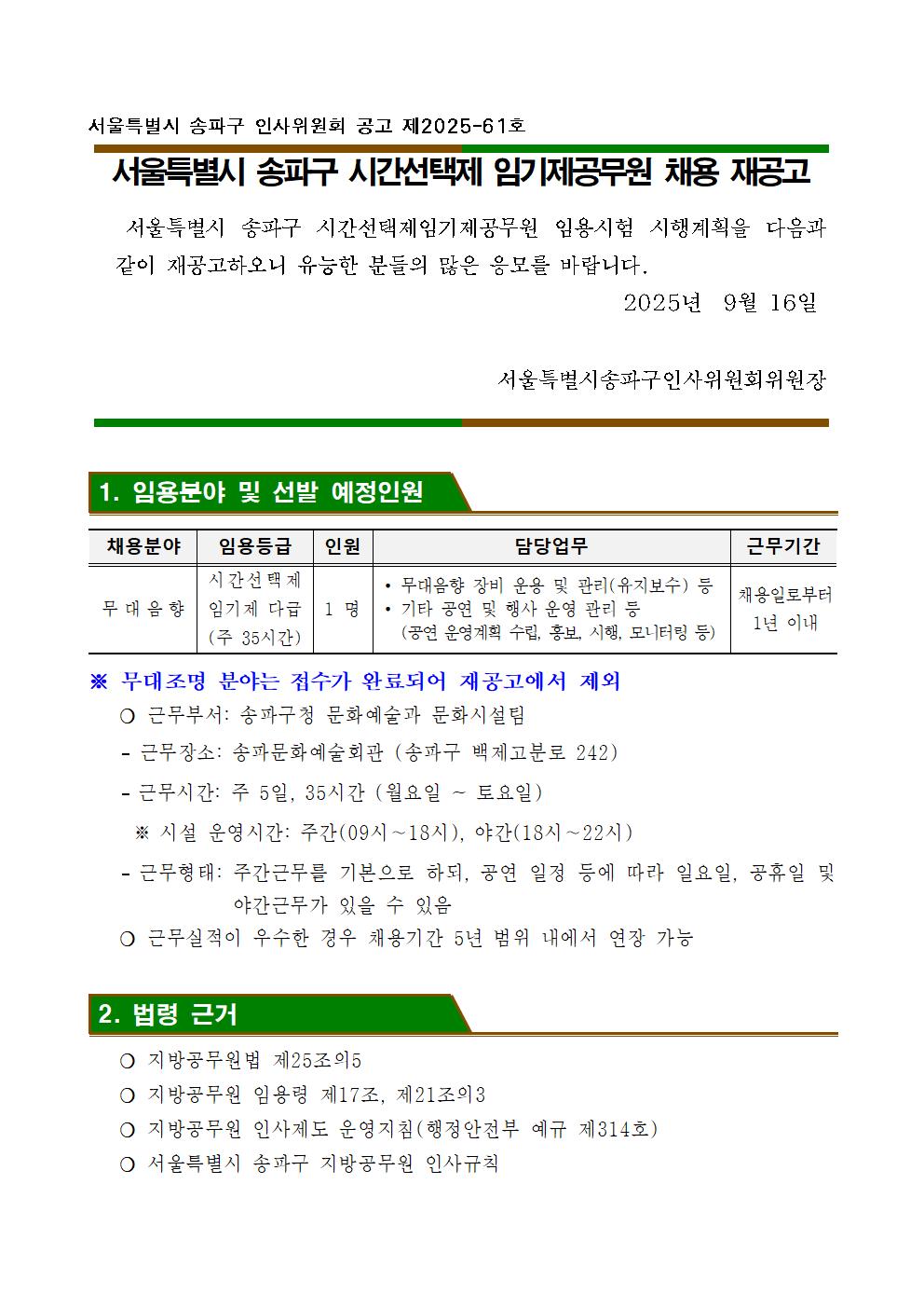 [송파구청] 서울특별시 송파구 시간선택제 임기제공무원(무대음향) 채용