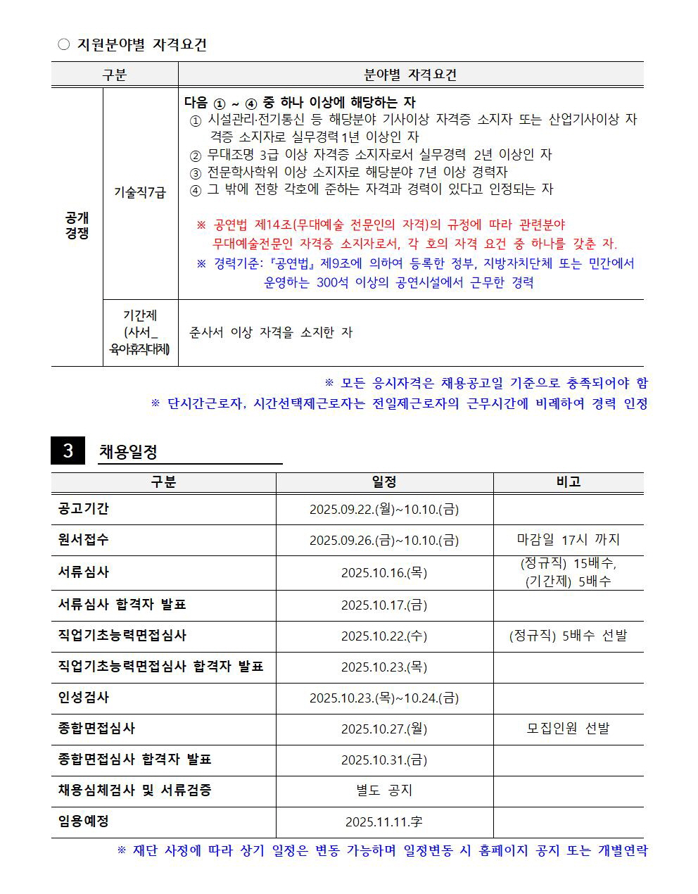 2025년도 2차 예술의전당 [일반직종 계약직] 블라인드 채용 공고 (~2025.08.08. 17:00)